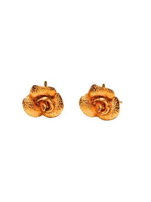 Vintage Gold Tone Rose Flower Pierced Earrings- Pre-Owned.
