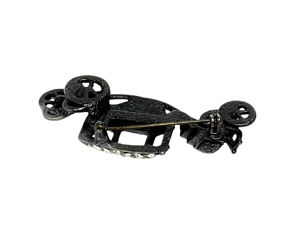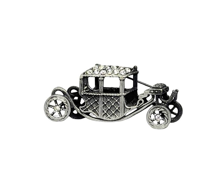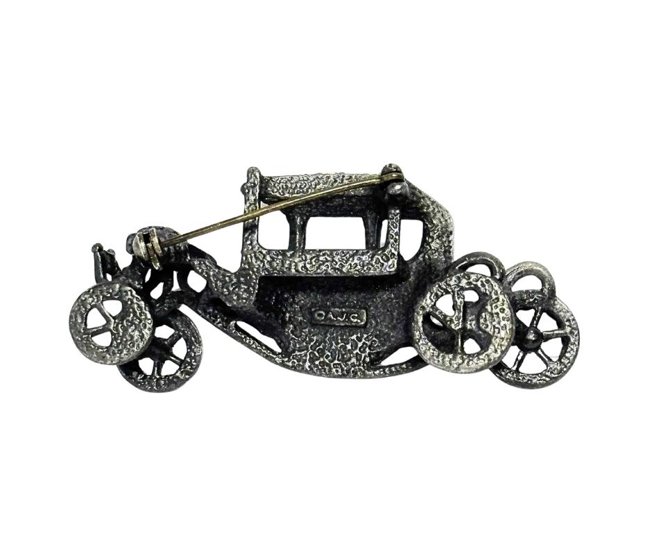 Vintage A.J.C. Pewter And Rhinestones Old Fashion Auto Pin Brooch- Pre-Owned.