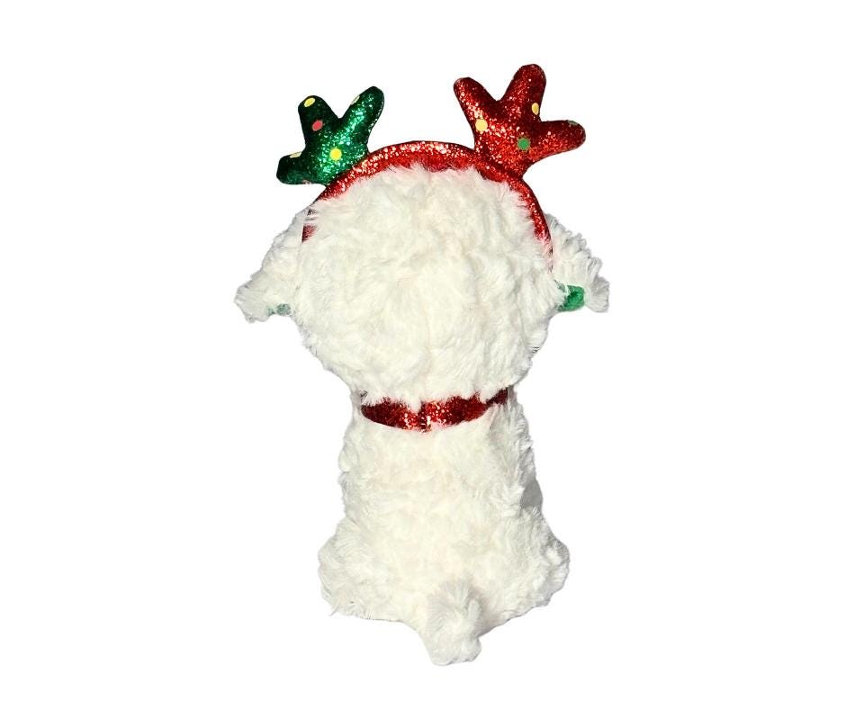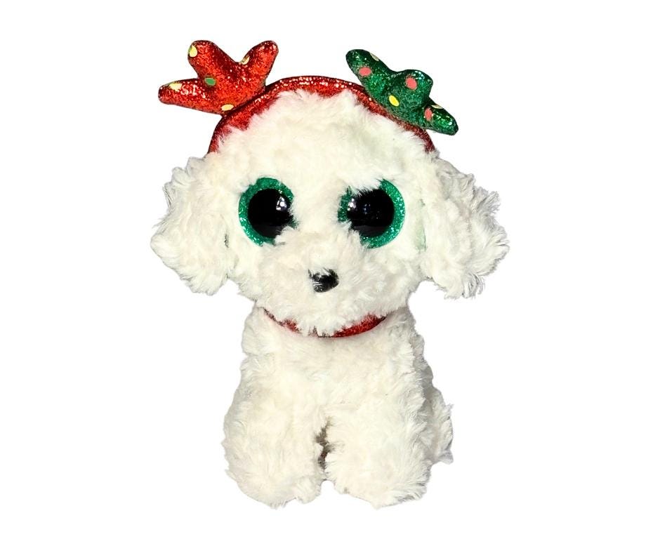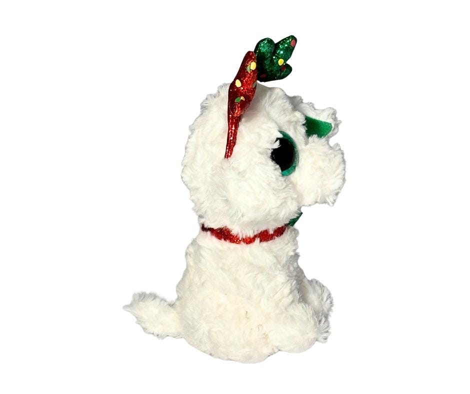 Ty 2019 Beanie Boos Sugar The Christmas White Dog Wearing Reindeer Antlers Stuffed Animal Toy- Pre-Owned