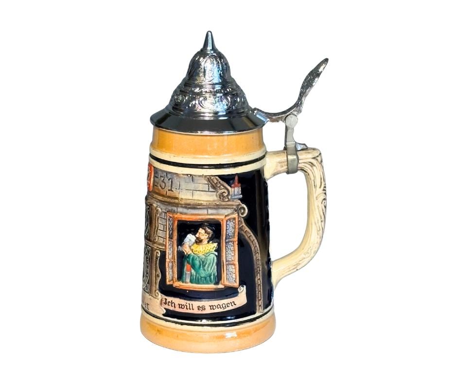 Vintage Werner Corzelius Rothenburg OB D.T. German Hand Painted Ceramic Beer Stein With Hinged Lid