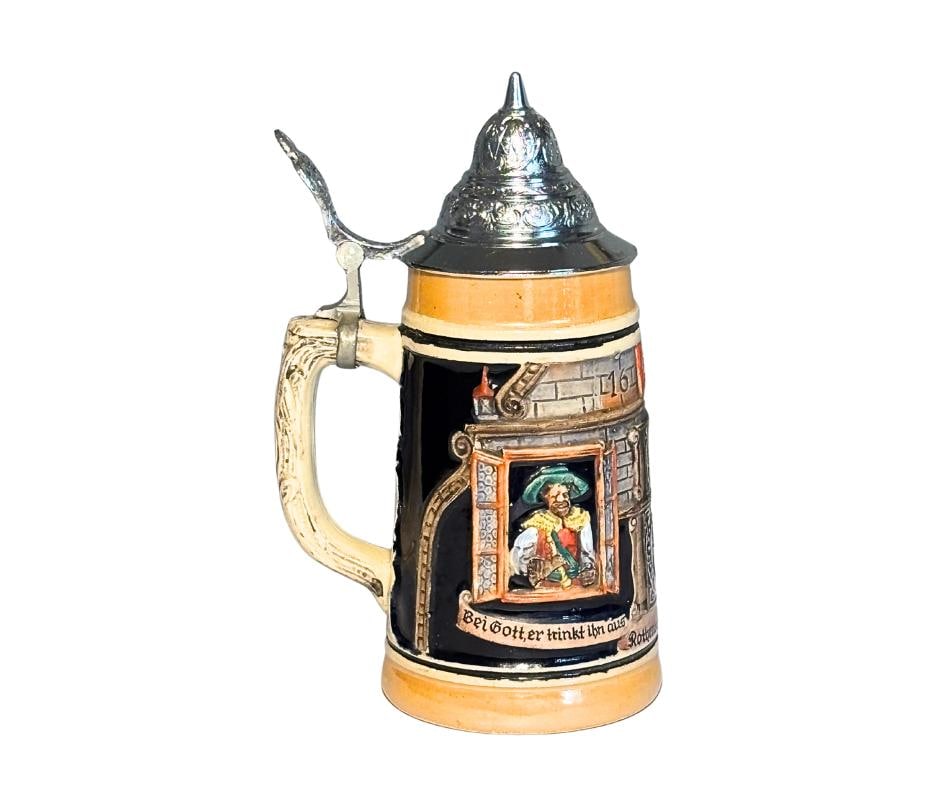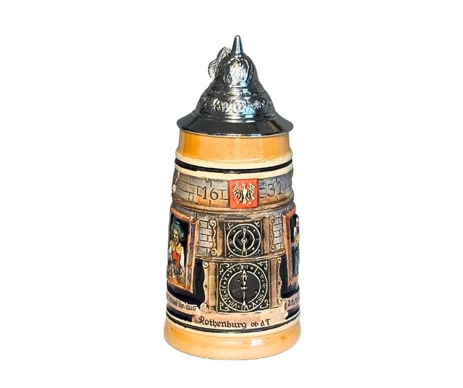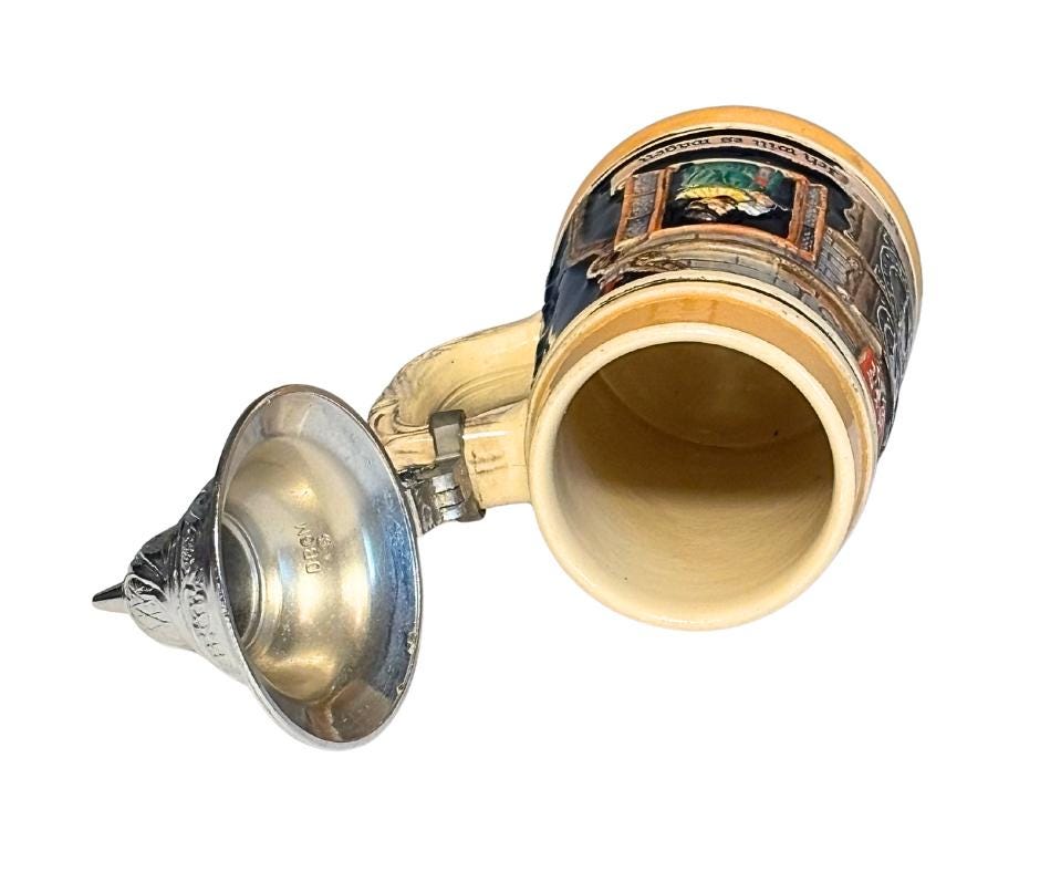 Vintage Werner Corzelius Rothenburg OB D.T. German Hand Painted Ceramic Beer Stein With Hinged Lid - Pre-Owned