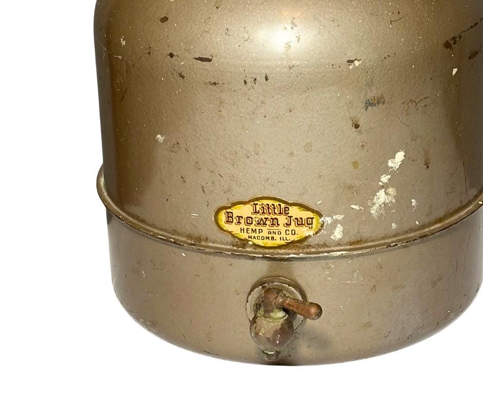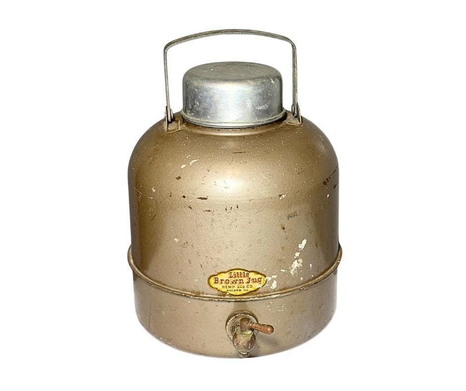 Vintage 1950s Little Brown Jug Hemp And Co. Macomb, IL. Thermos Type Water Cooler With Lid