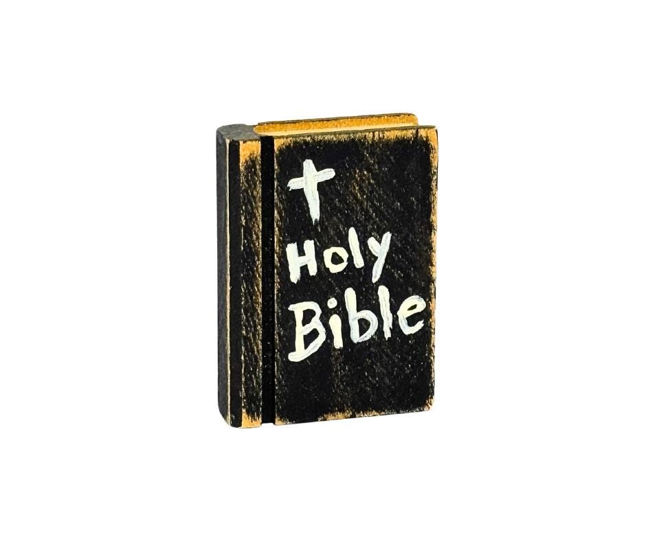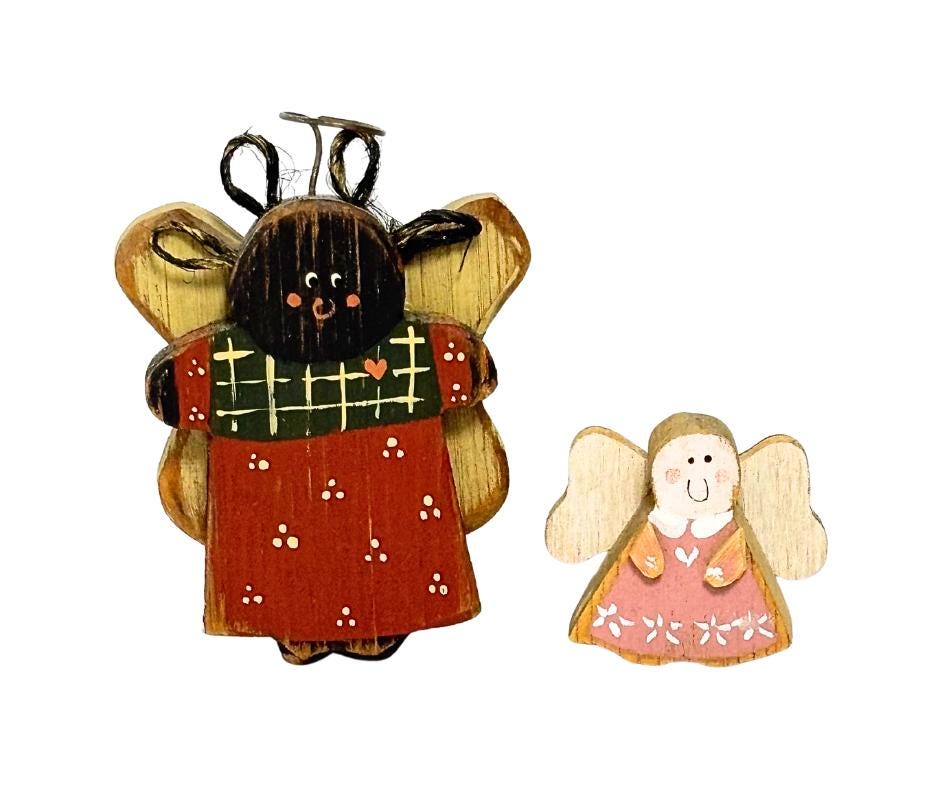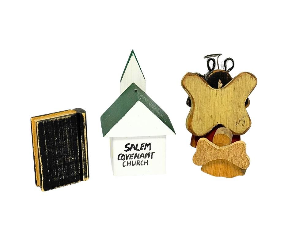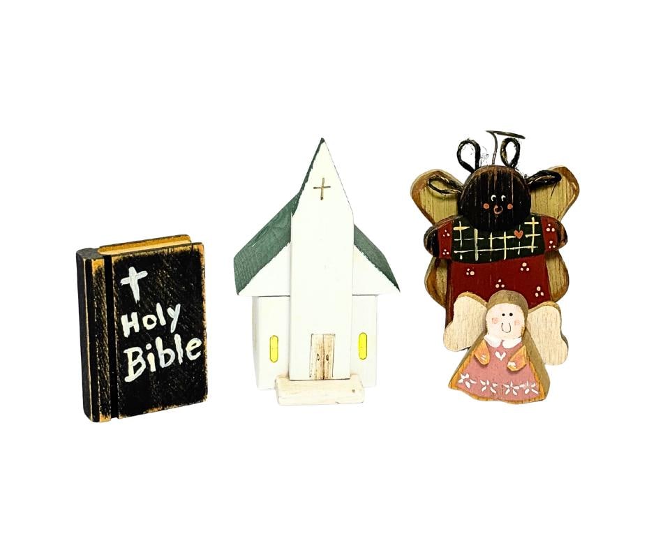 Vintage 1987 Handmade Wood Church Angels And Bible Miniature Figurines Lot Of Four