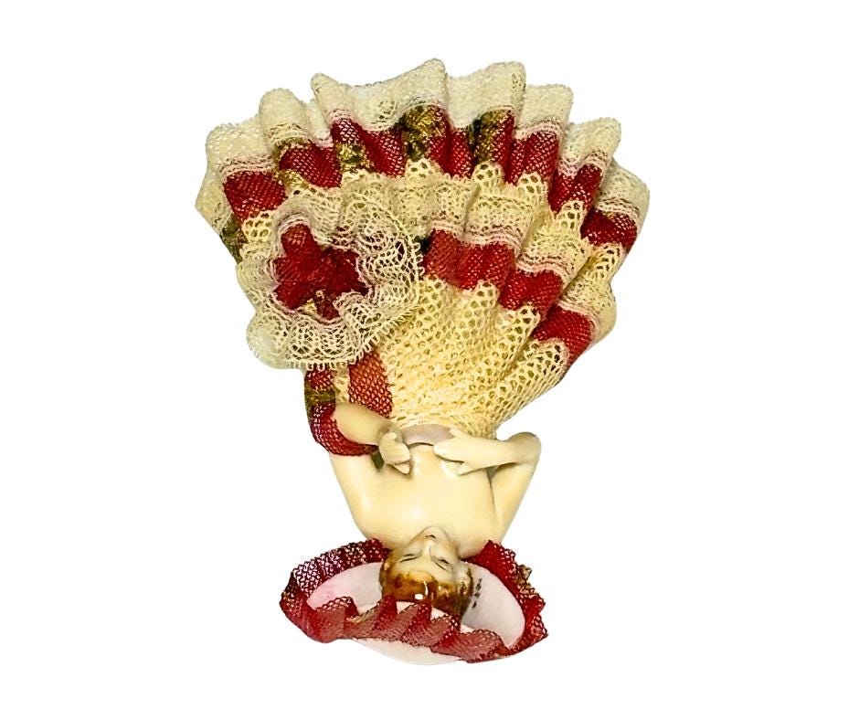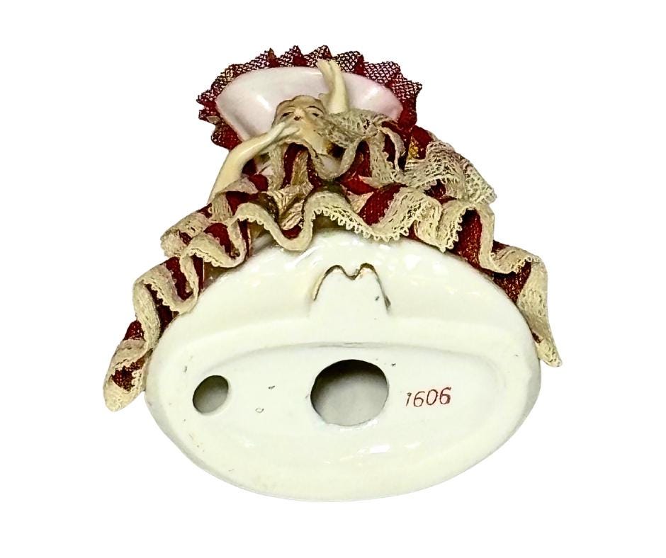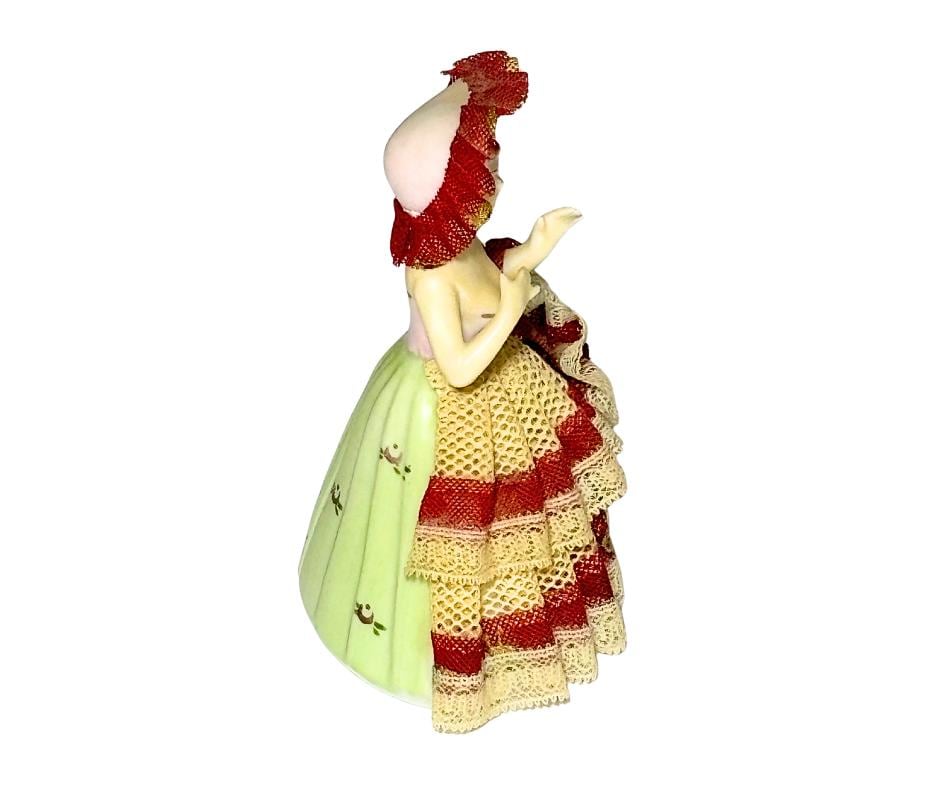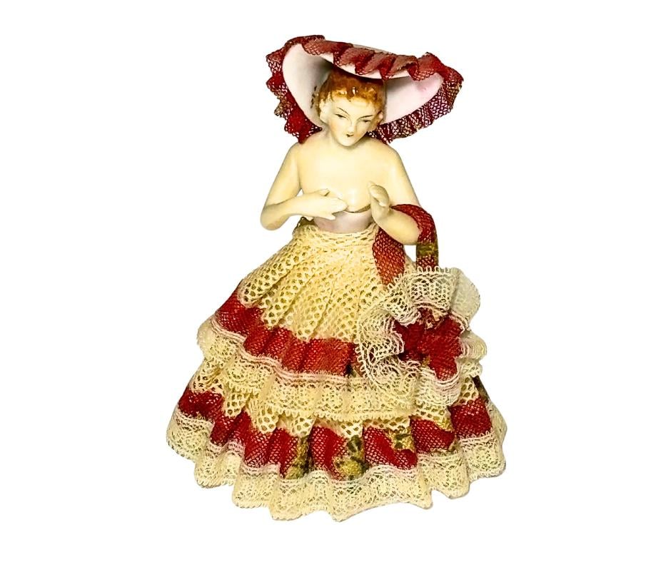Vintage Hand Painted Porcelain Dresden Style Victorian Lady With Stiffened Lace Dress Collectible Figurine- No. 1606