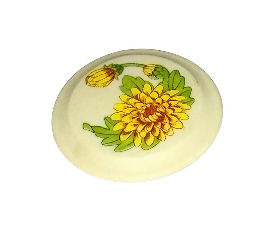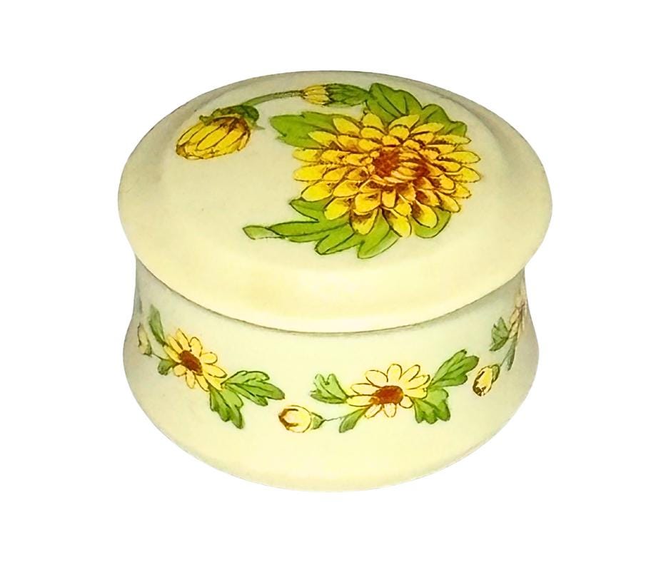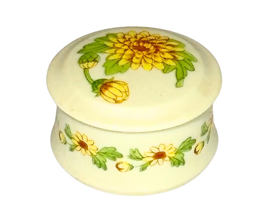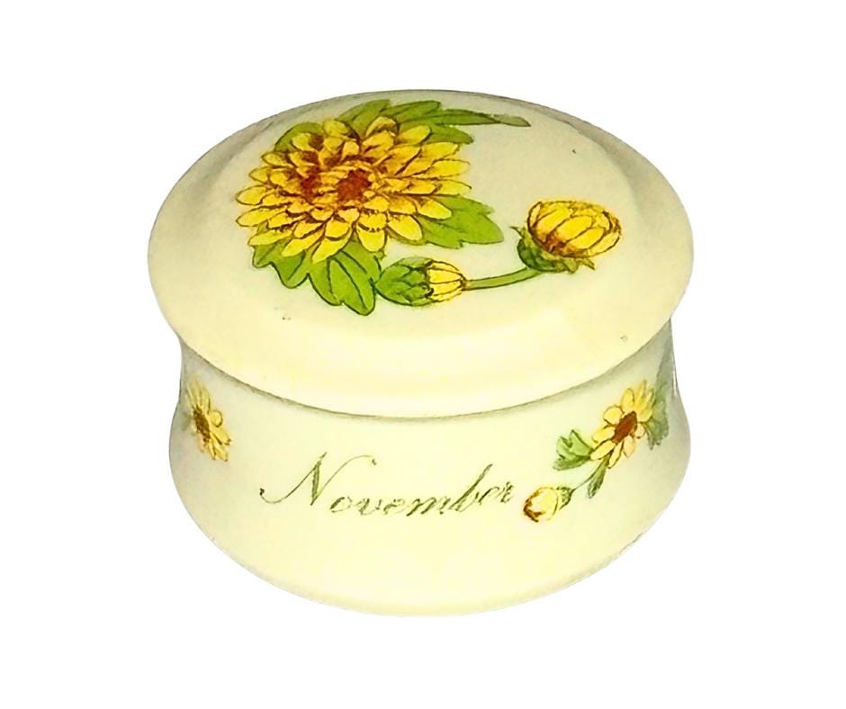 Vintage Lefton Hand Painted Porcelain November Chrysanthemum Floral Collectible Ring Dish Trinket Holder Box With Lid- No. KW642