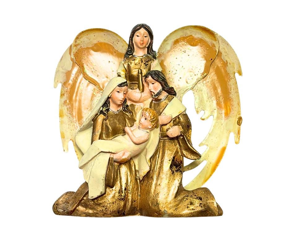 Vintage Resin And Metal Nativity Angel Mary Joseph And Baby Jesus Christmas Figurine