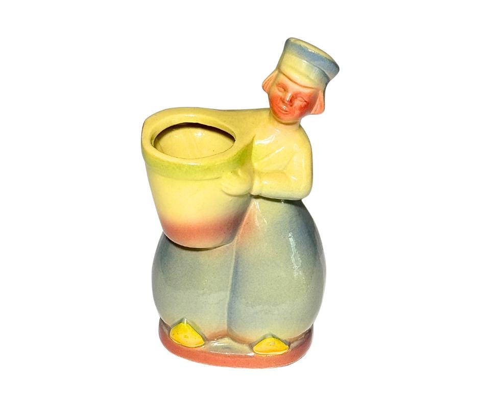 Vintage Ceramic Dutch Boy In Volendam Worker Pants And Clogs Planter Vase