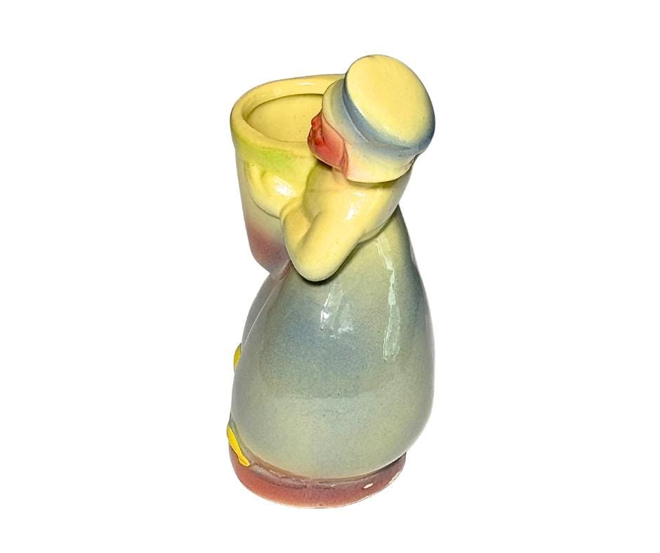 Vintage Ceramic Dutch Boy In Volendam Worker Pants And Clogs Planter Vase- Pre-Owned