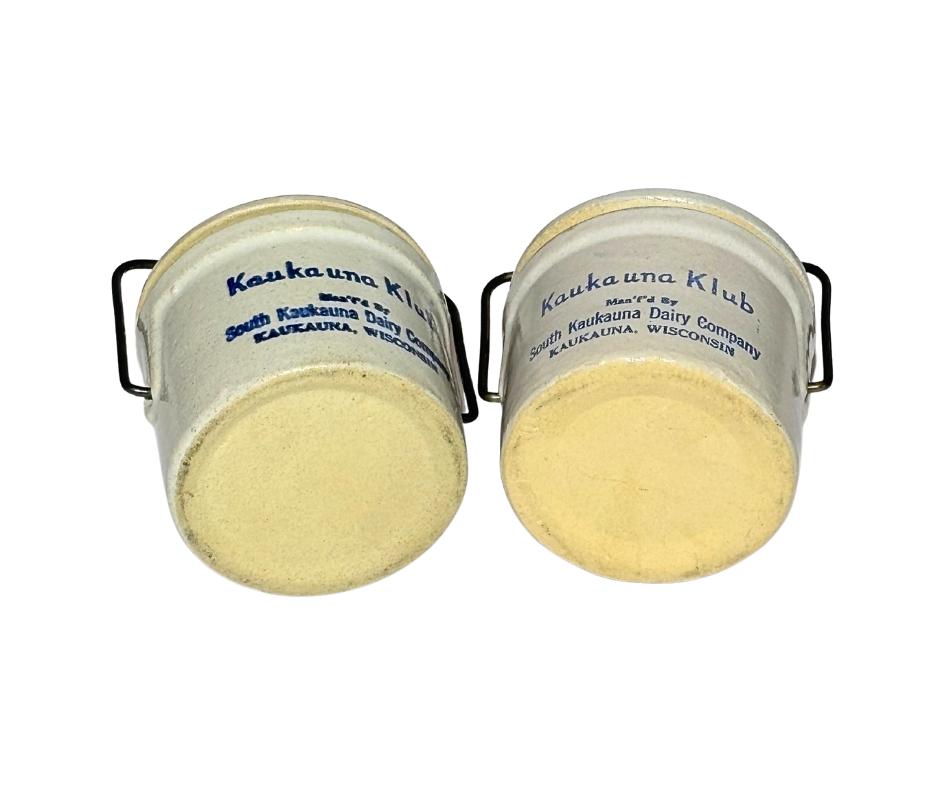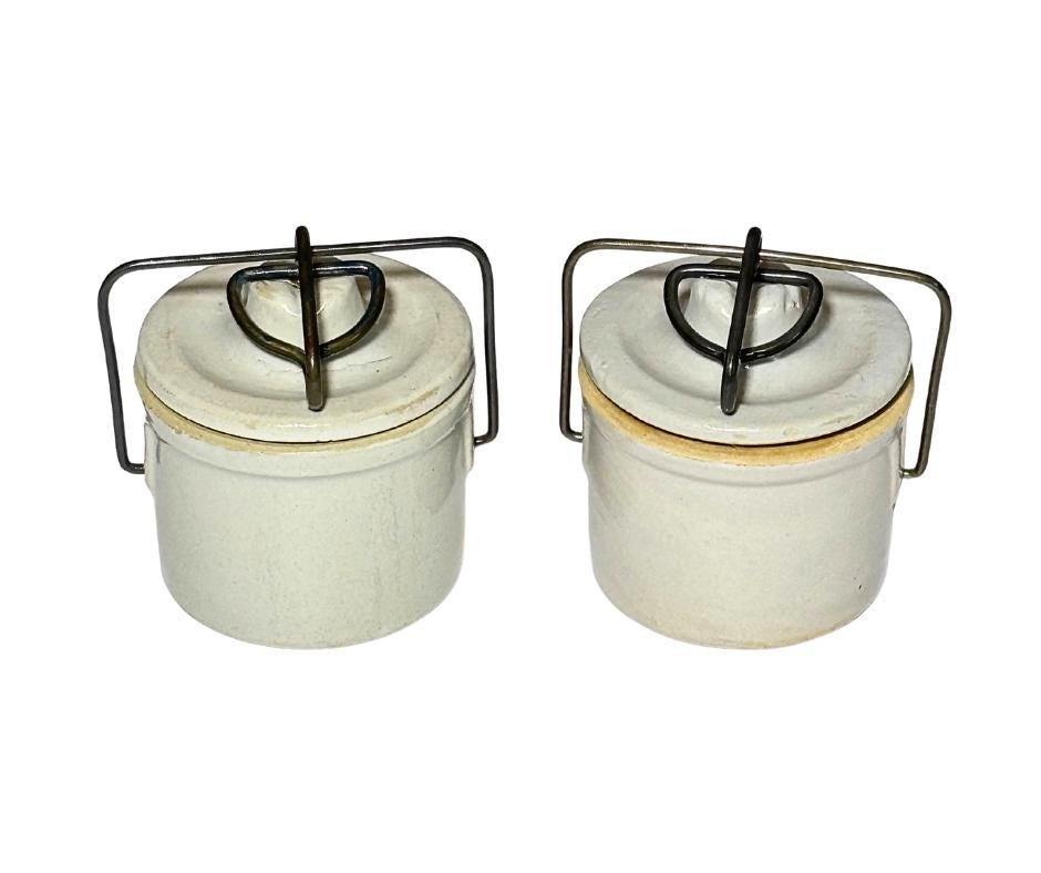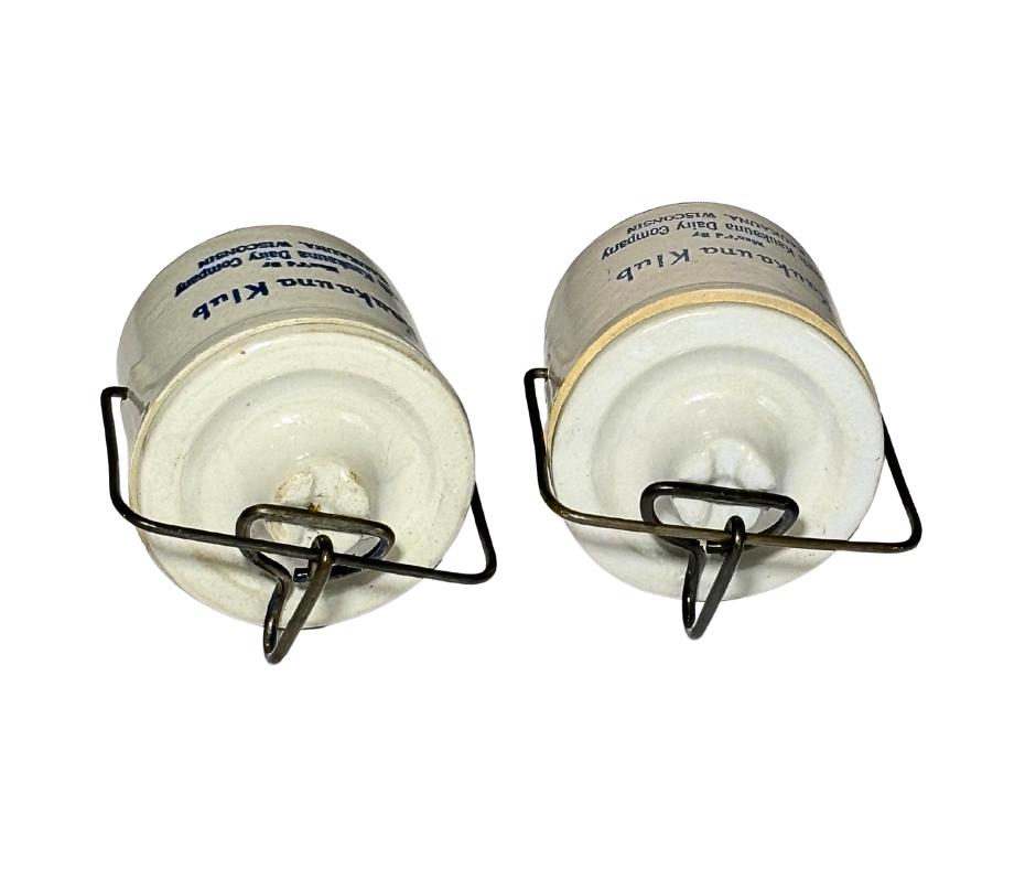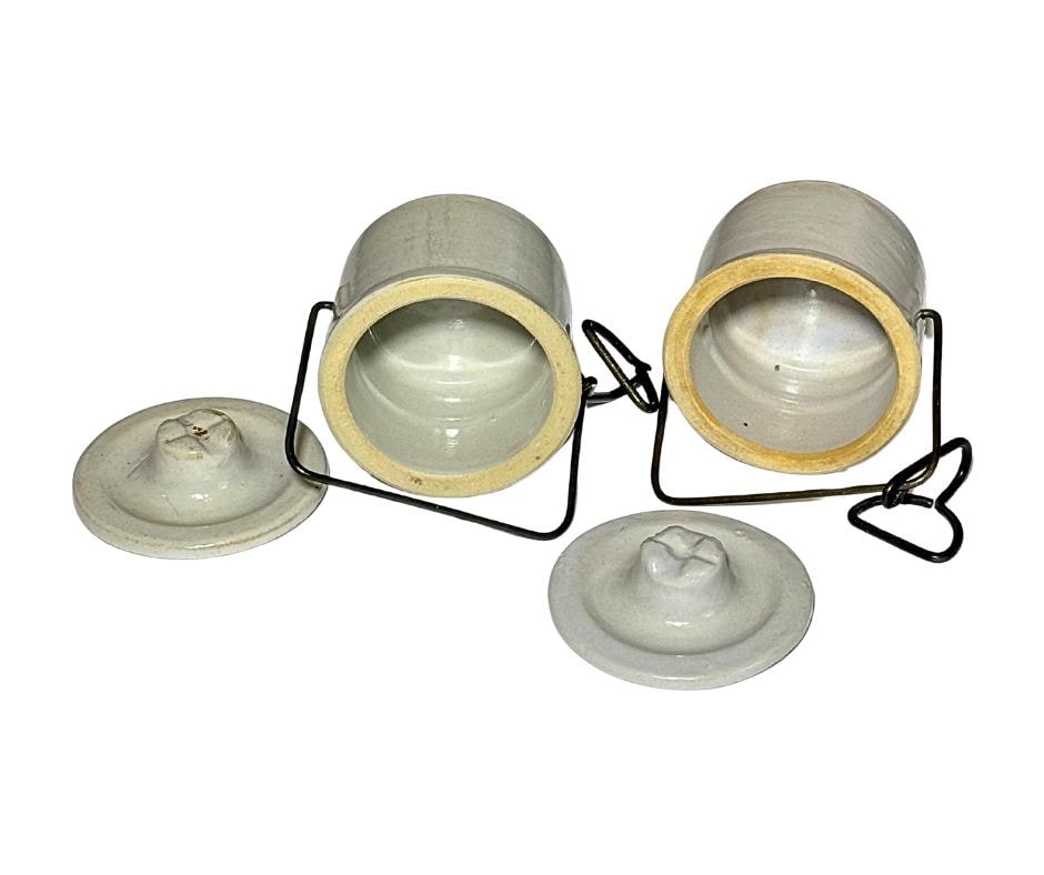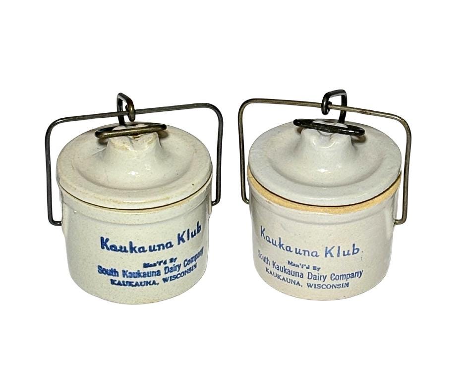 Vintage Kaukauna Klub Stoneware Cheese Crocks With Lid And Wire Bail Smallest Size- Set Of Two
