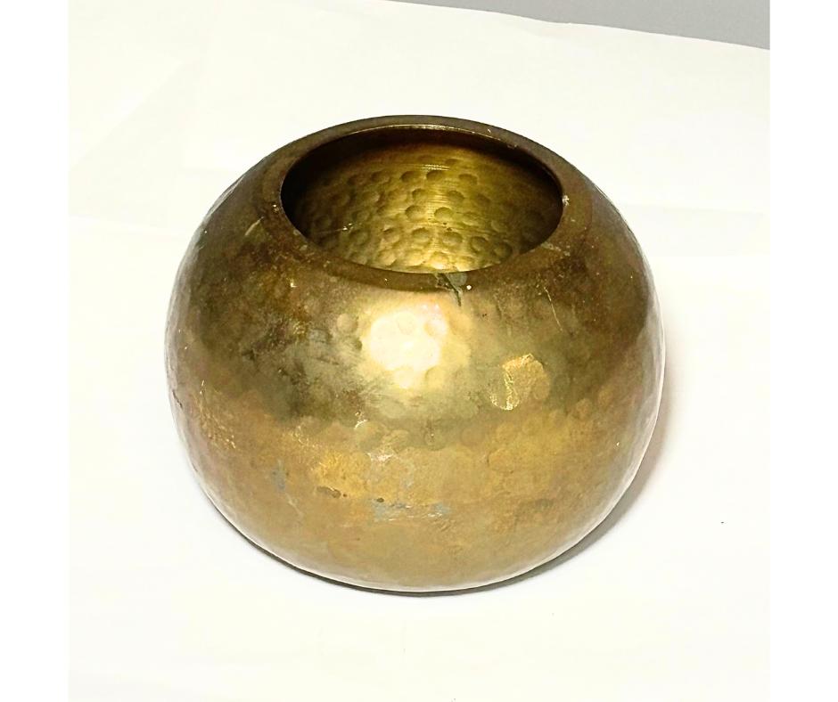 Vintage Brass Globe Vase Planter With Hammered Finish- Pre-Owned