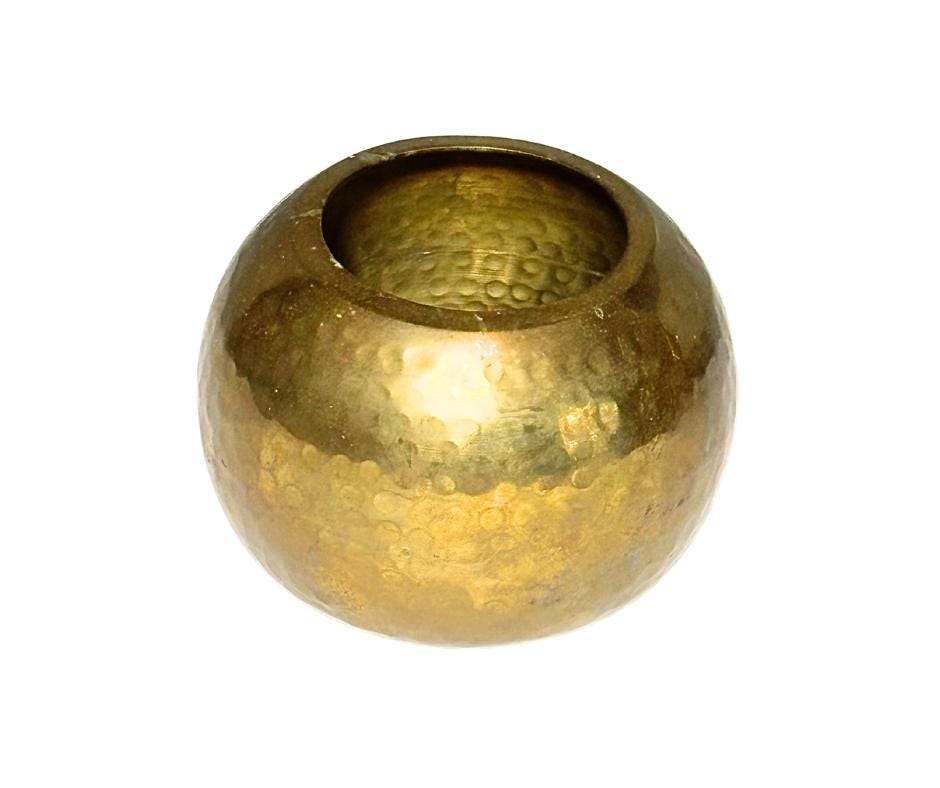 Vintage Brass Globe Vase Planter With Hammered Finish