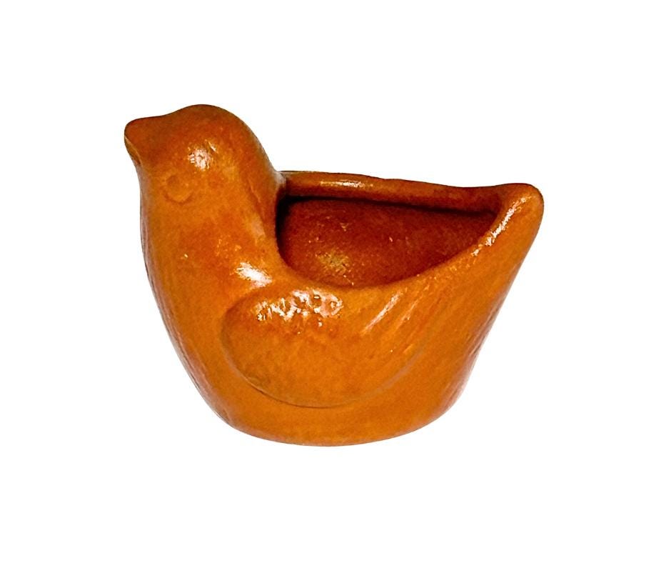 Vintage Handmade Mexican Redware Red Clay Pottery Folk Art Bird Planter Figurine- Pre-Owned