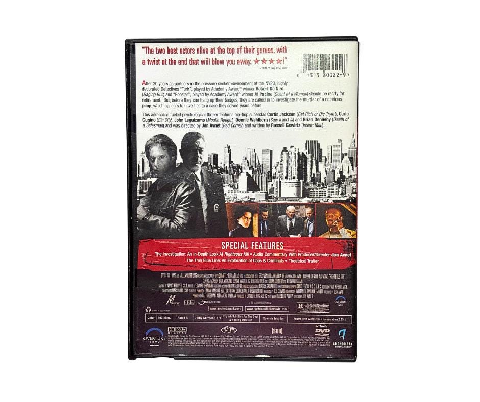 Righteous Kill DVD Movie- Video. Used, In Great Condition. Tested- Works.