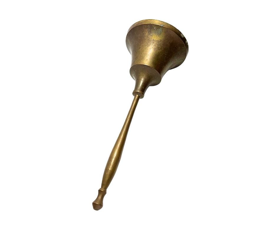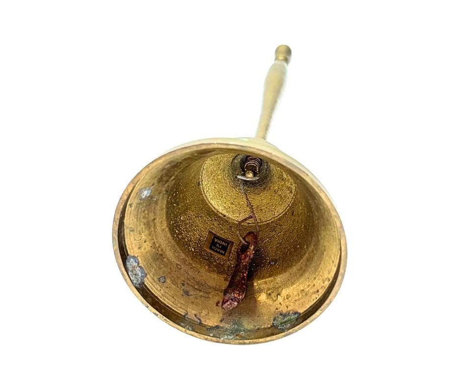 Vintage India Brass Hand-Held School Dinner Service Bell With Clapper