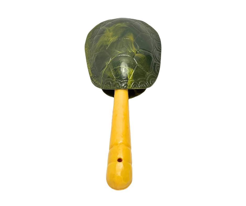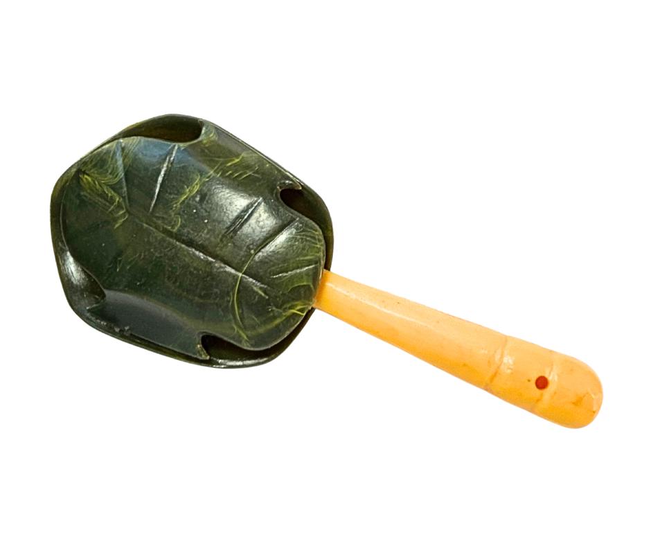 Vintage Celluloid Plastic Turtle Shell Shaped Baby Rattle