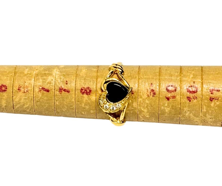Vintage 1992 Avon Gold Tone Black Onyx And Clear Rhinestones Heart Size 9 Ring