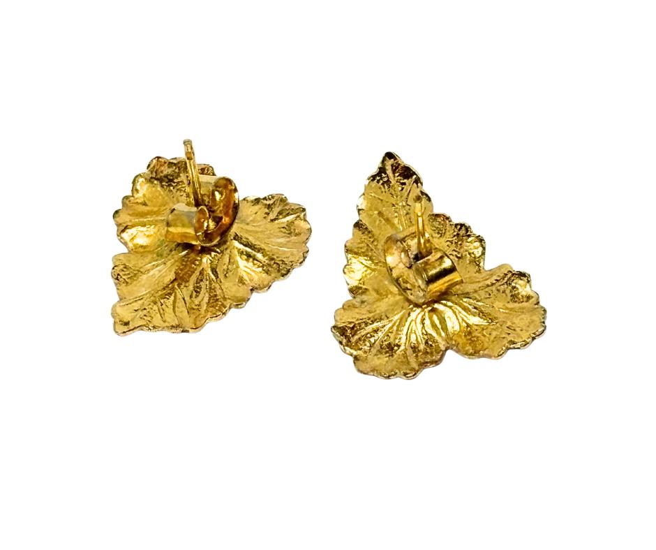 Vintage Gold Tone Enamel Heart-Shaped Leaf Pierced Earrings