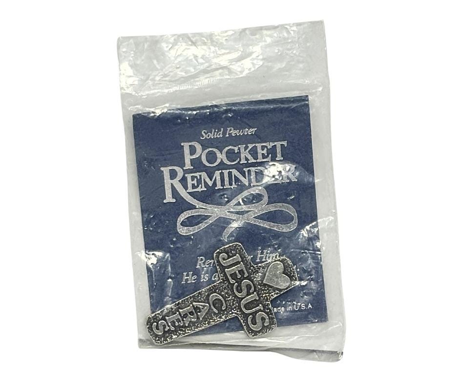 Vintage 1989 Solid Pewter Bob Siemon Designs Jesus Cares Pocket Cross- New In Package