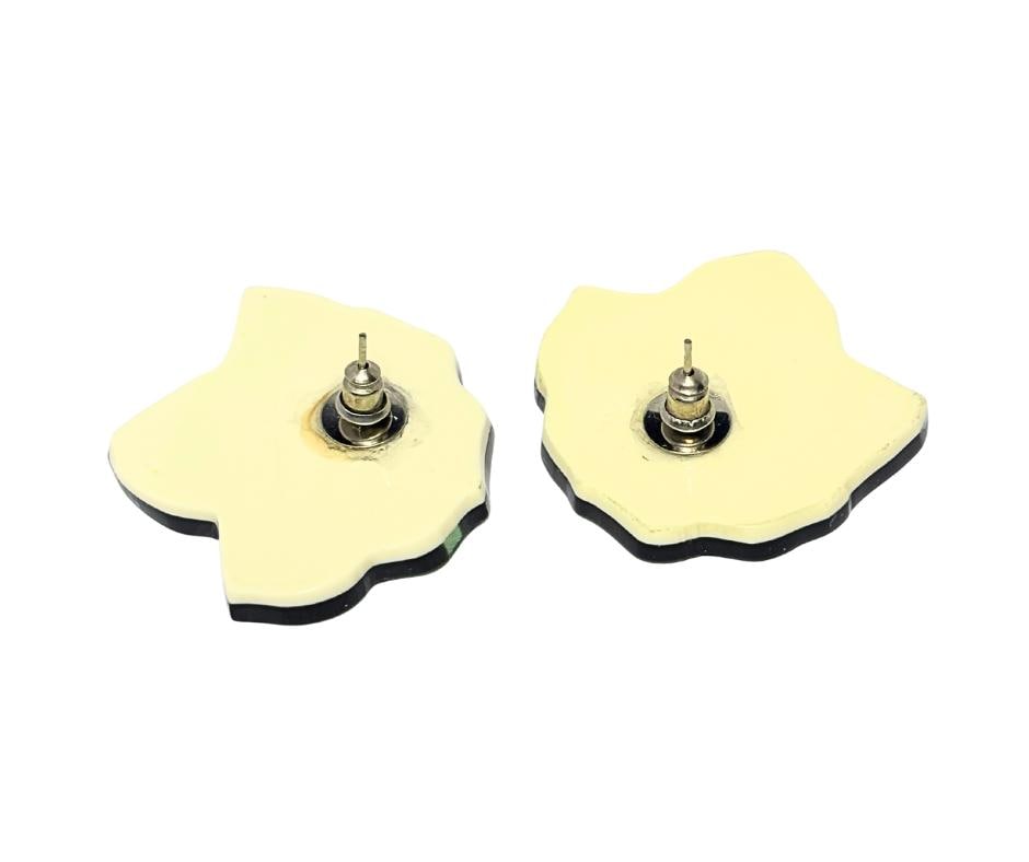 Vintage Green Plastic Acrylic Stained Glass Aesthetic Lotus Succulent Pierced Earrings- Pre-Owned.
