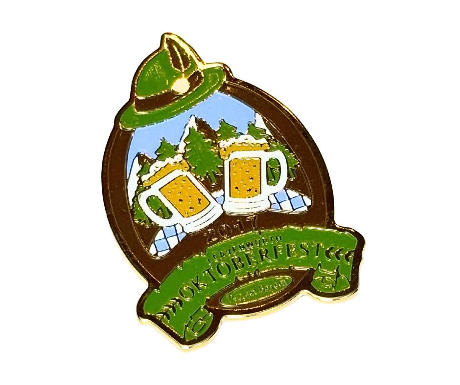 2017 Gold Tone Enamel Leavenworth, Washington Oktoberfest Lapel Hat Pin Brooch