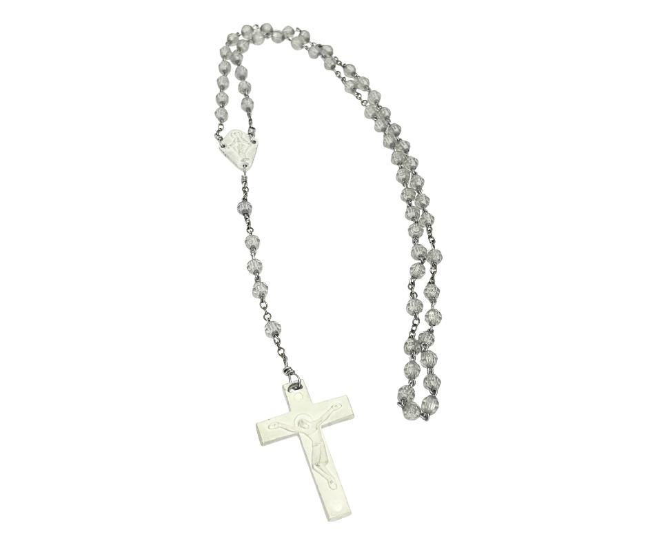 Vintage Gray Faceted And White Plastic Rosary Beads- Pre-Owned.