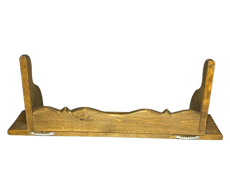 Vintage 1980s Solid Wood Wall Shelf With Scalloped Edges Two Pegs And Hangers