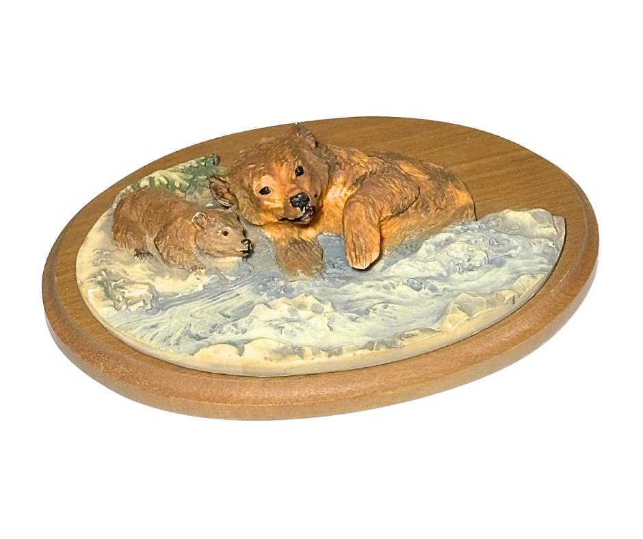 Vintage 1988 Avon American Wildlife Collection 3D Brown Bear And Cub Handcasted Wood Wall Plaque