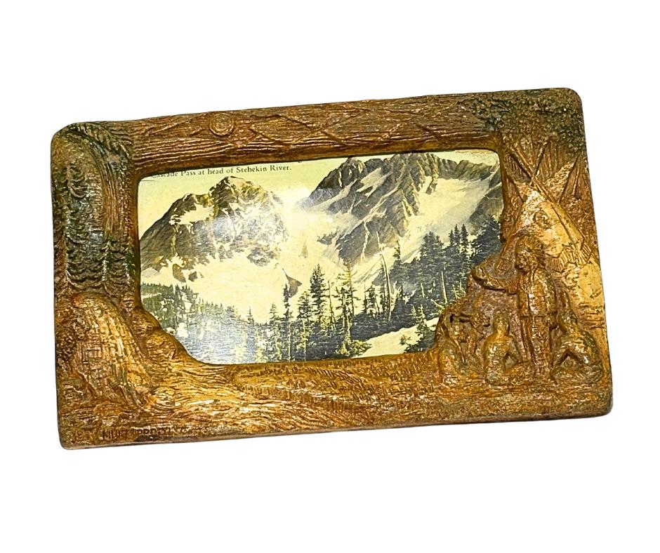 Vintage 1957 North Cascades National Park 3D Relief Souvenir Native American Picture Frame- Pre-Owned.