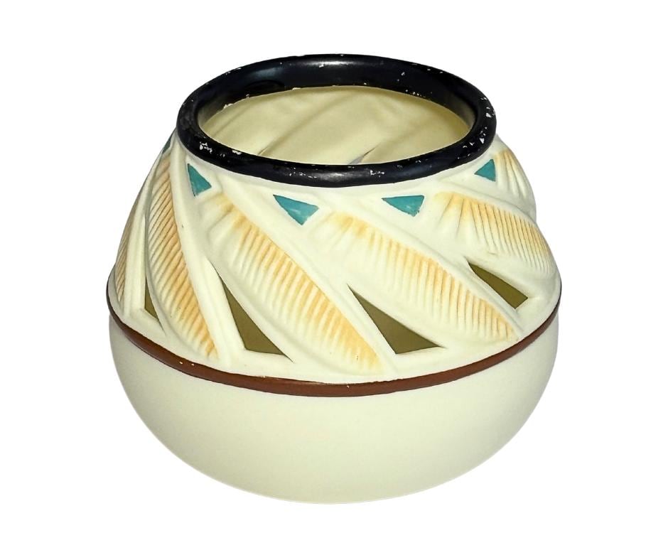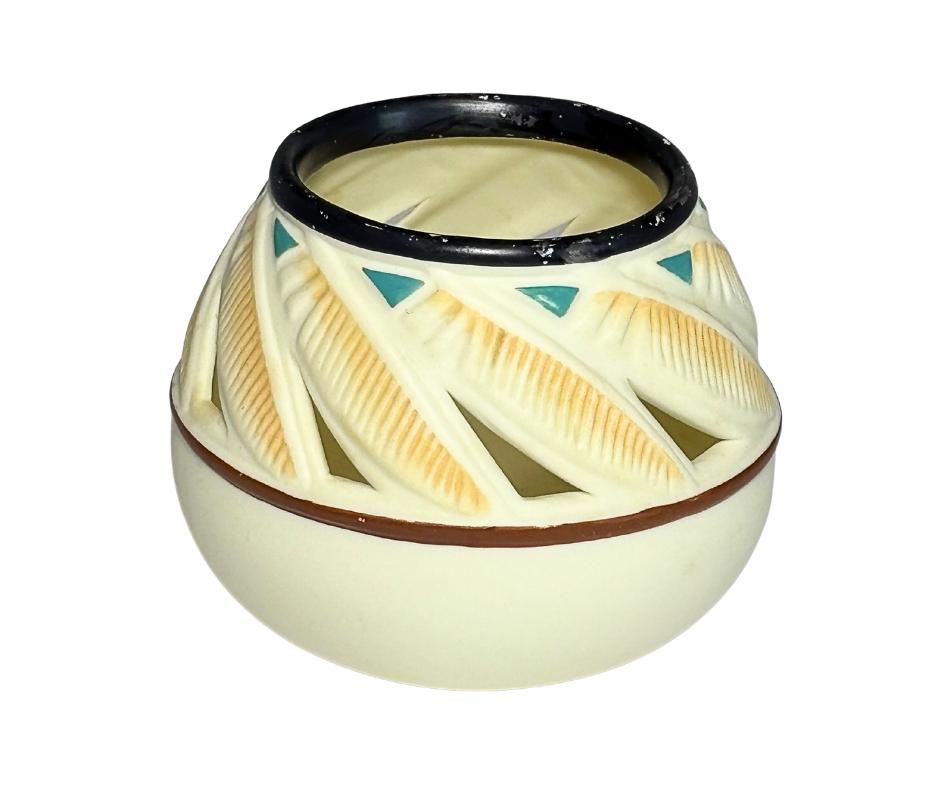 Vintage 1980s PartyLite Ceramic Southwest Feather Pot Votive Tealight Candle Holder- Pre-Owned