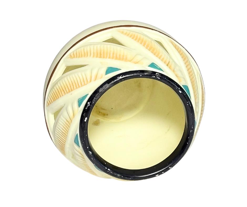 Vintage 1980s PartyLite Ceramic Southwest Feather Pot Votive Tealight Candle Holder