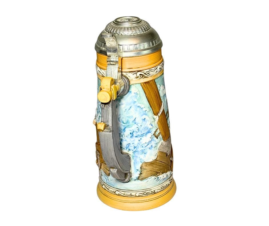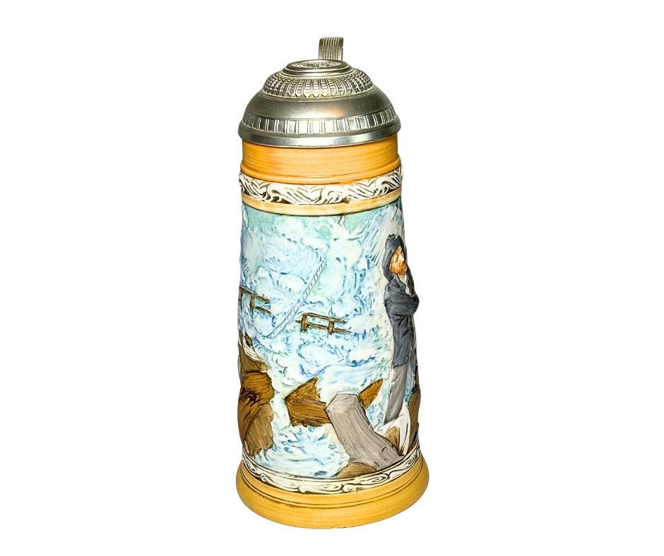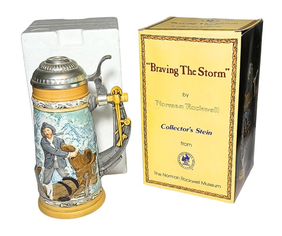 Vintage 1982 Norman Rockwell Braving The Storm Collector's Stein W/ Hinged Lid Certificate Of Authenticity And Box- No. 2,682