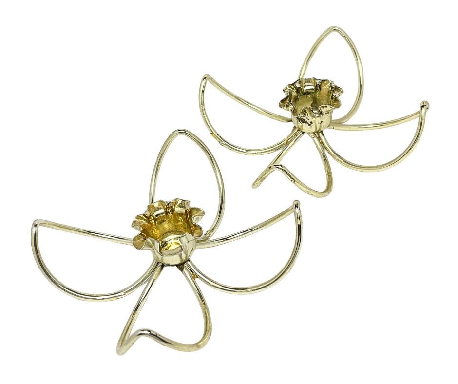 Vintage MCM W. T. Rogers Lustro Magic Gold-Finished Metalware Flower Shape Candlestick Holders