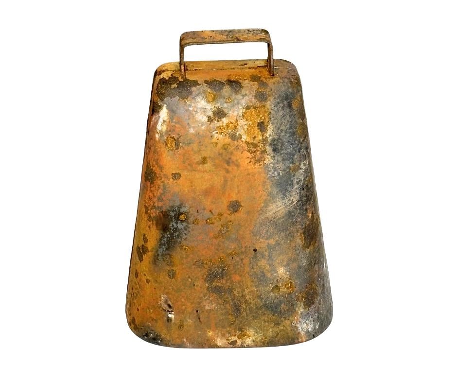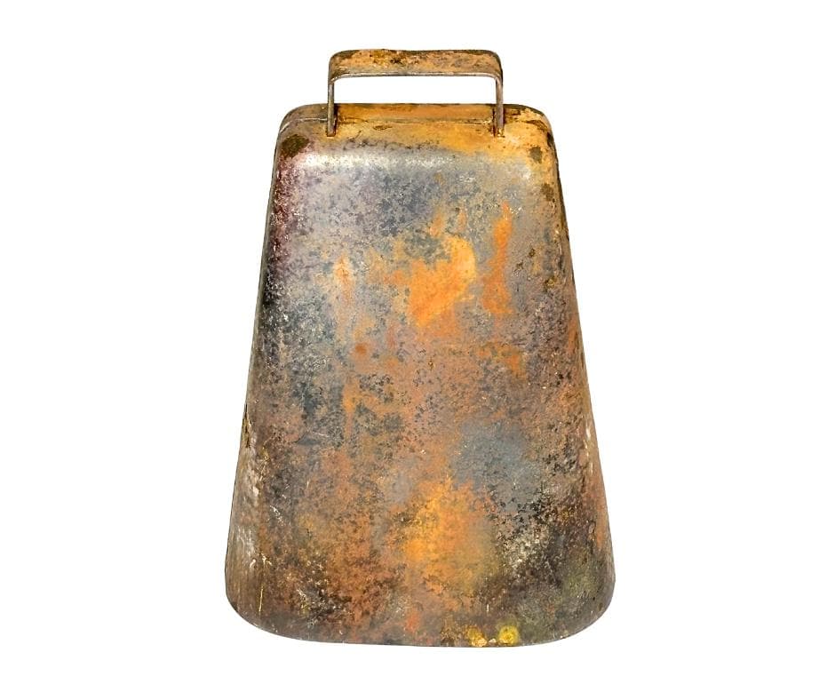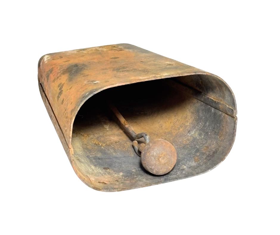 Antique Large Primitive Hand-Forged Heavy Iron Metal Cowbell With Original Clapper- Pre-Owned
