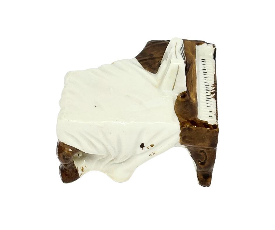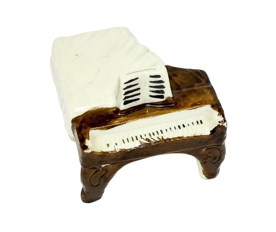 Vintage Occupied Japan Hand-Painted Ceramic Miniature Piano Collectible Knick-Knack Figurine