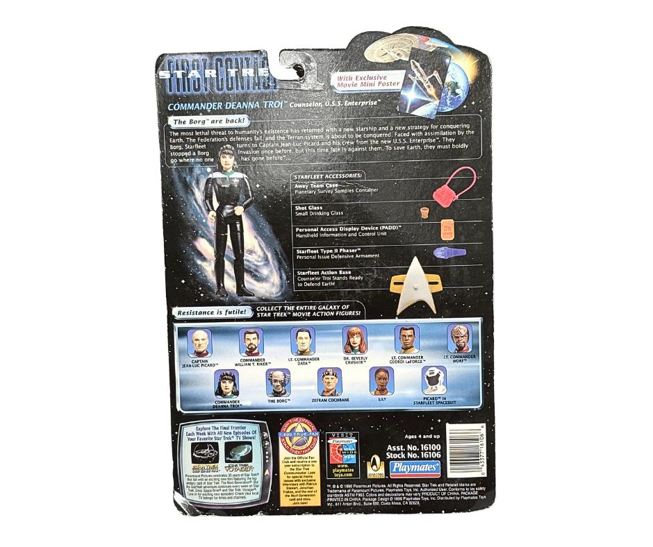 Vintage 1996 Playmates Star Trek First Contact Commander Deanna Troi Action Figure Toy- New In Package