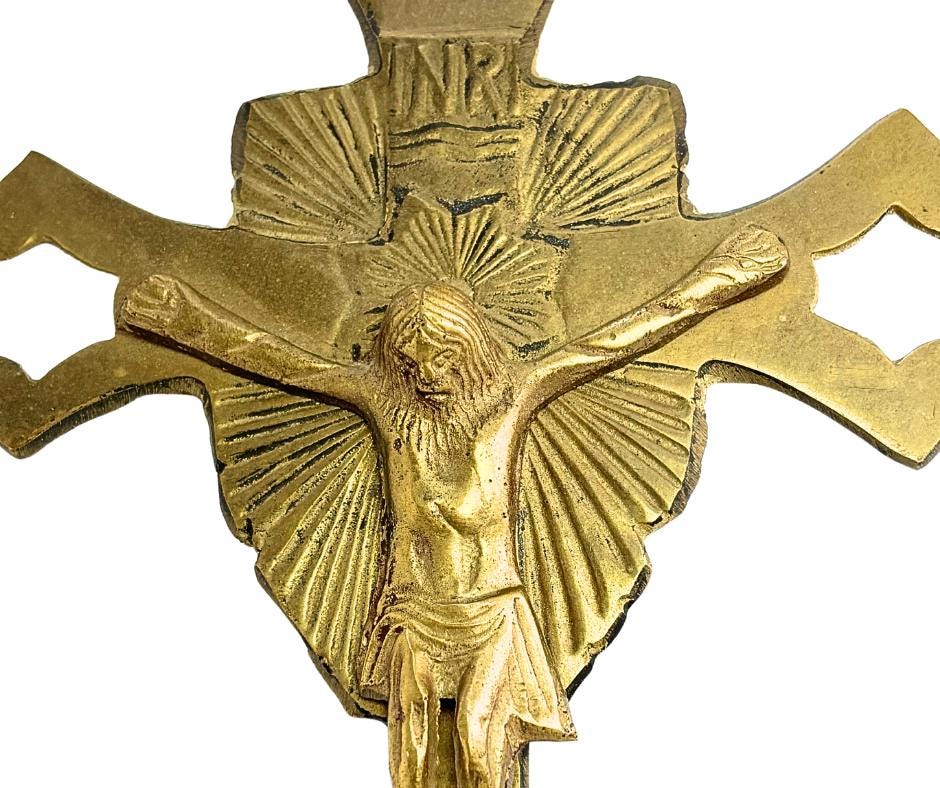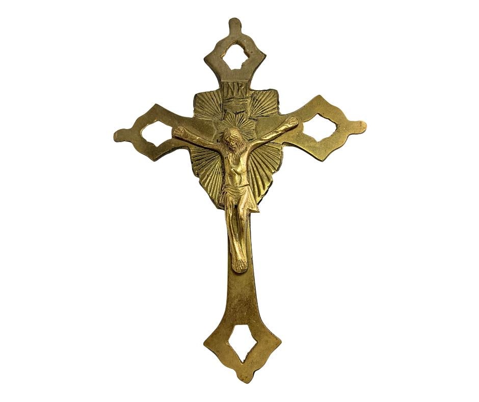 Vintage INRI Brass Openwork With Starburst Cross Hanging Crucifix