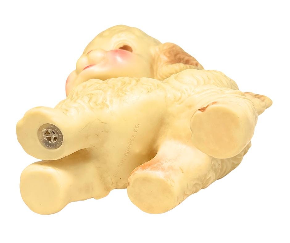 Vintage Ruth Newton Sun Rubber Co. Puppy Dog Baby Squeeze With Working Squeaker Swivel Head Toy