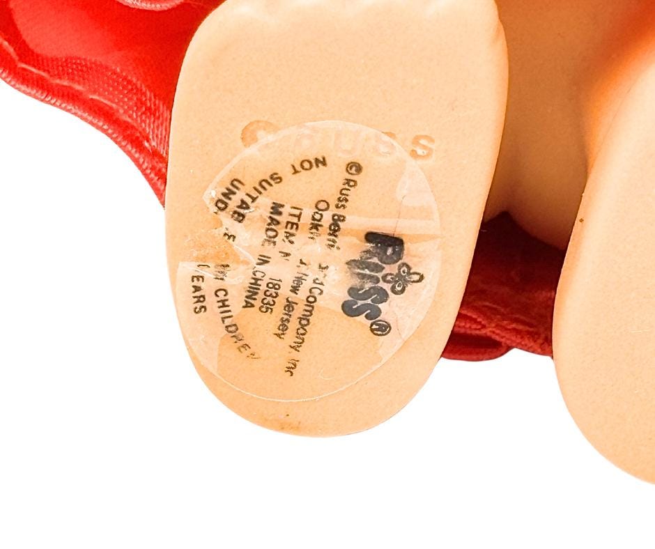 Vintage Red And White Russ Berrie Cheerleader Original Foot Sticker Troll Doll Toy