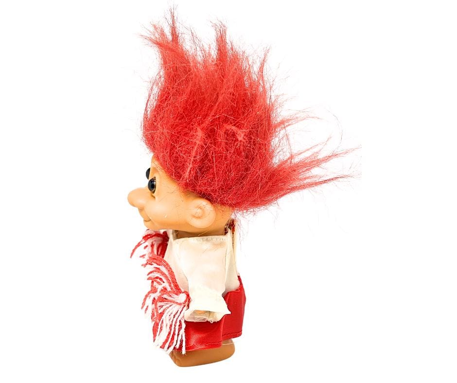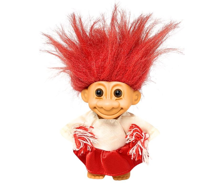 Vintage Red And White Russ Berrie Cheerleader Original Foot Sticker Troll Doll Toy- Pre-Owned.