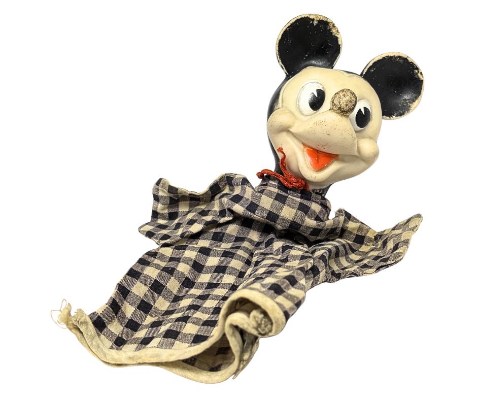 Vintage Rubber Gund Walt Disney Mickey Mouse Fabric Body Hand Puppet Toy