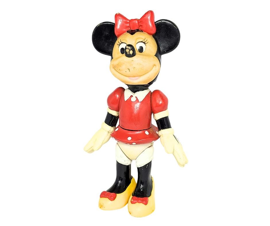 Vintage Disney Hard Plastic Minnie Mouse Collectible Posable Figurine Toy- Pre-Owned.