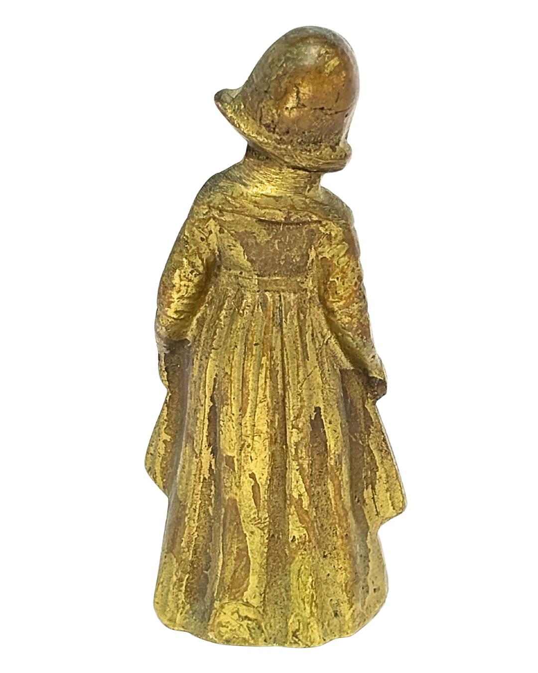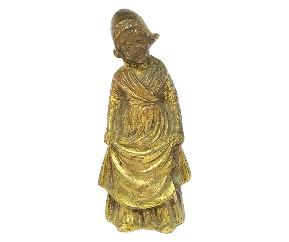 Vintage MCM Solid Brass Dutch Girl Milk Maid Figurine With Patina- Made In Belgium