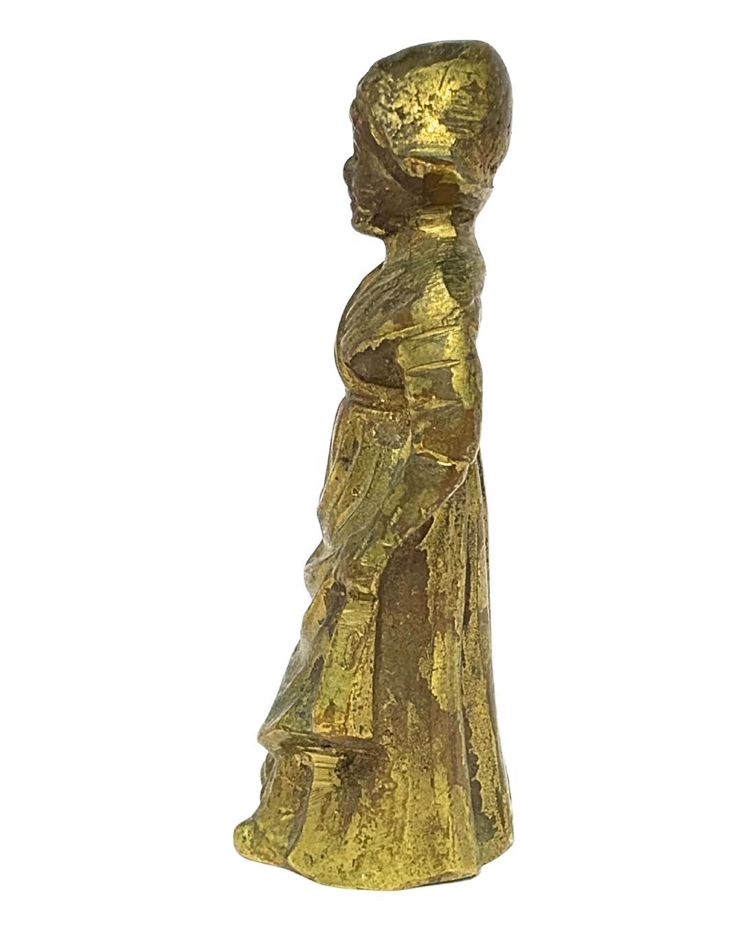 Vintage MCM Solid Brass Dutch Girl Milk Maid Figurine With Patina- Made In Belgium- Pre-Owned.