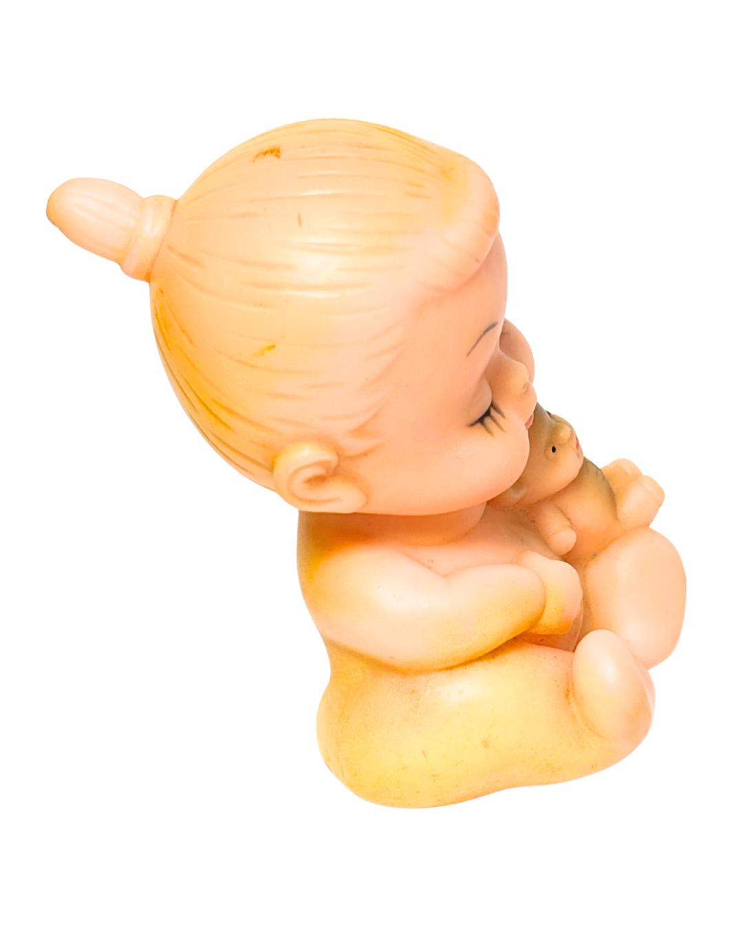 Vintage Rubber Kiddie Doll Holding Monkey Baby Squeeze With Working Squeaker Toy