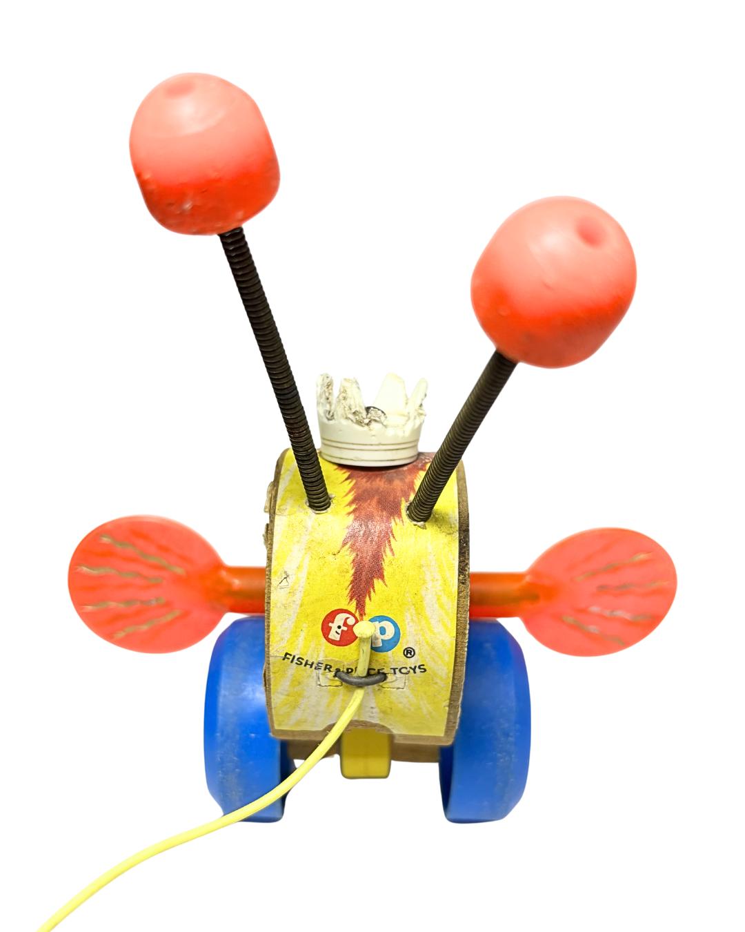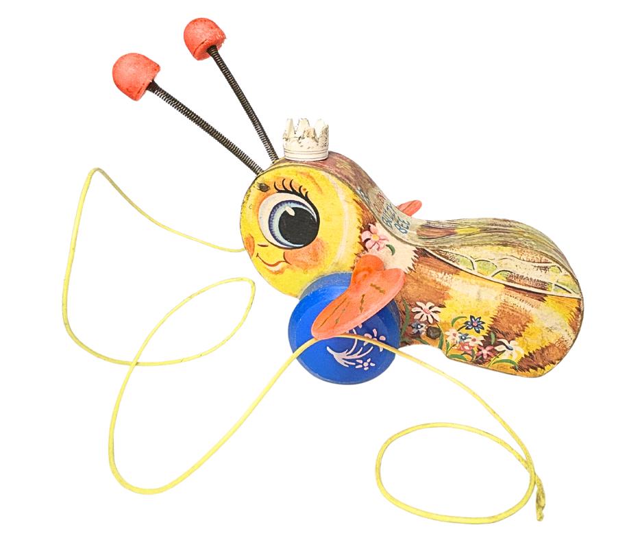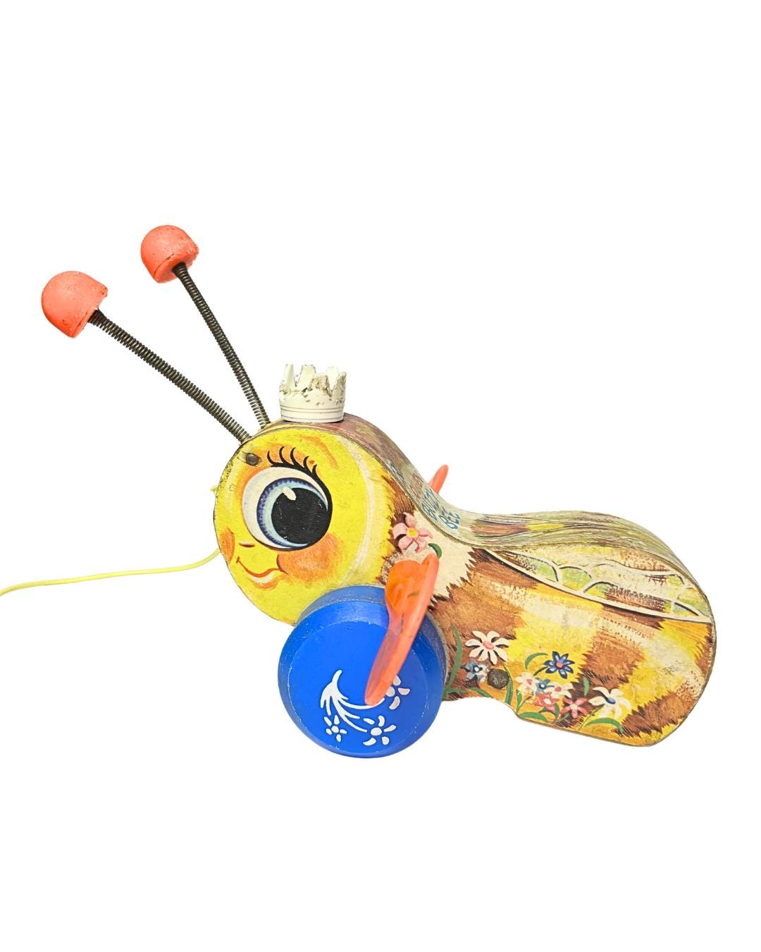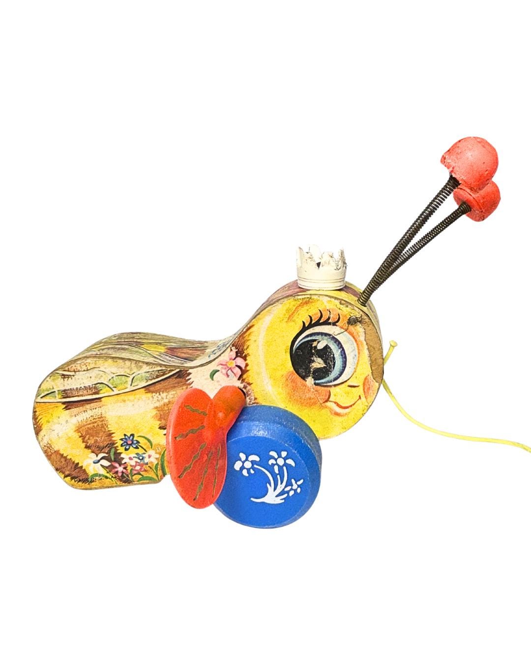 Vintage 1970s Fisher-Price Queen Buzzy Bee Wooden Pull Toy- No. 444