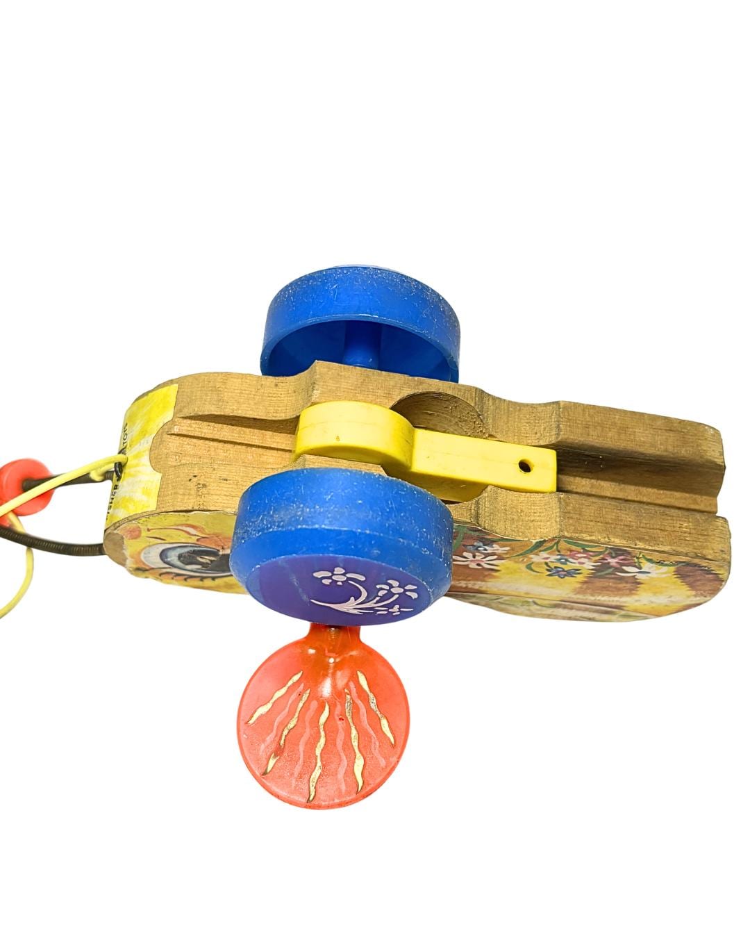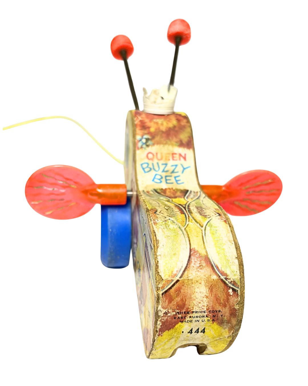 Vintage 1970s Fisher-Price Queen Buzzy Bee Wooden Pull Toy- No. 444- Pre-Owned.