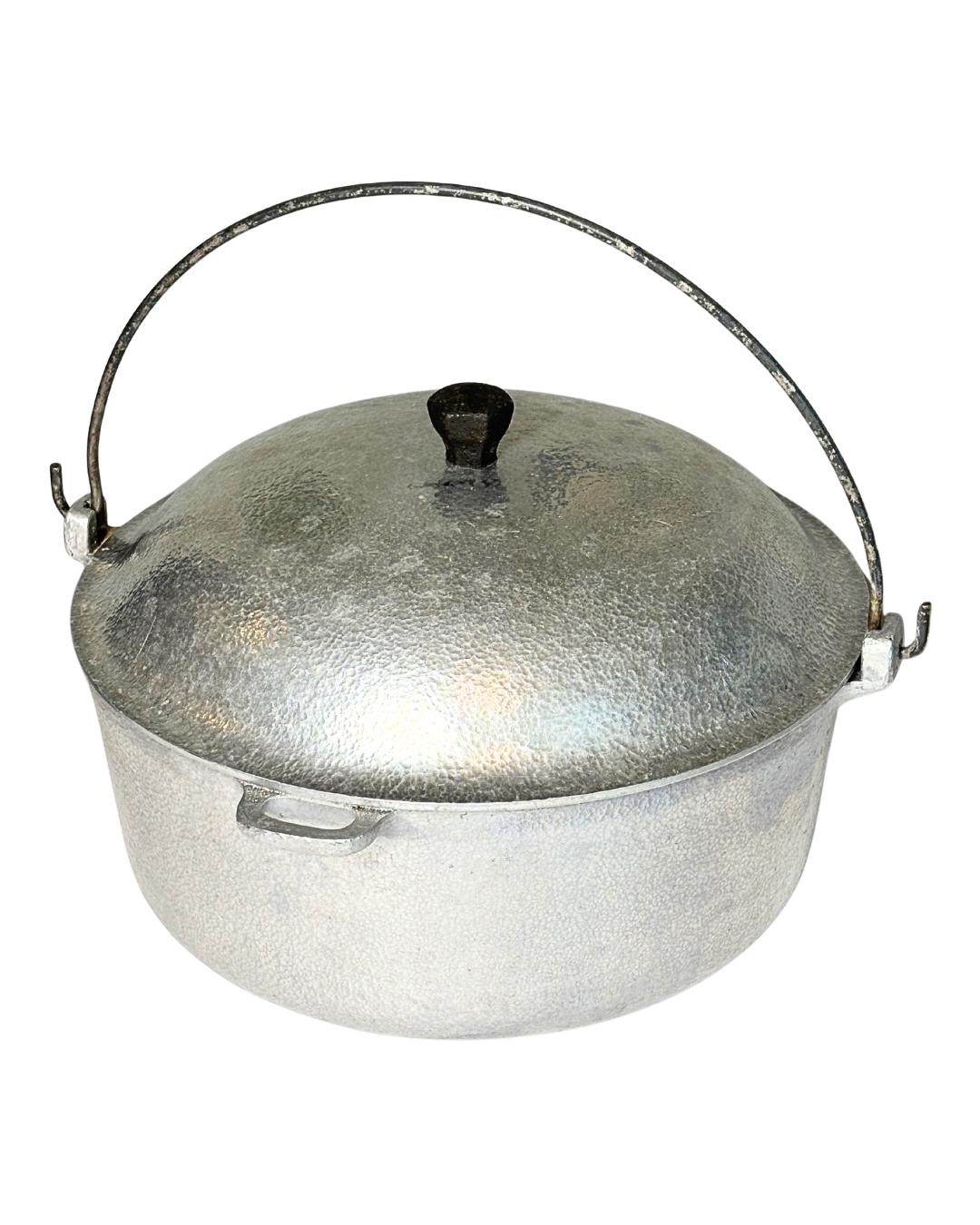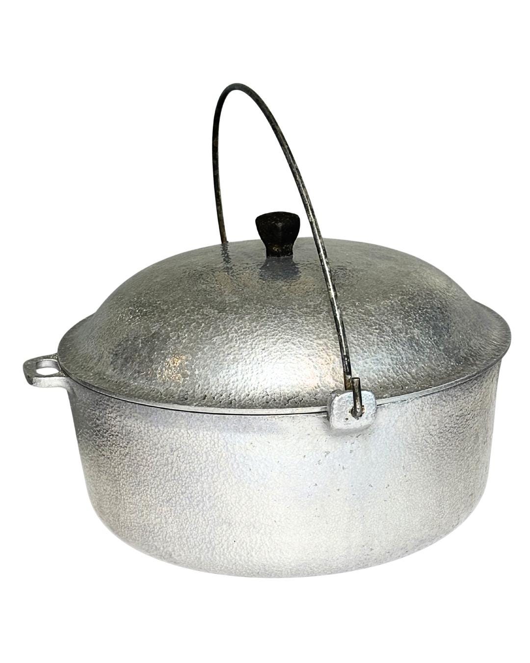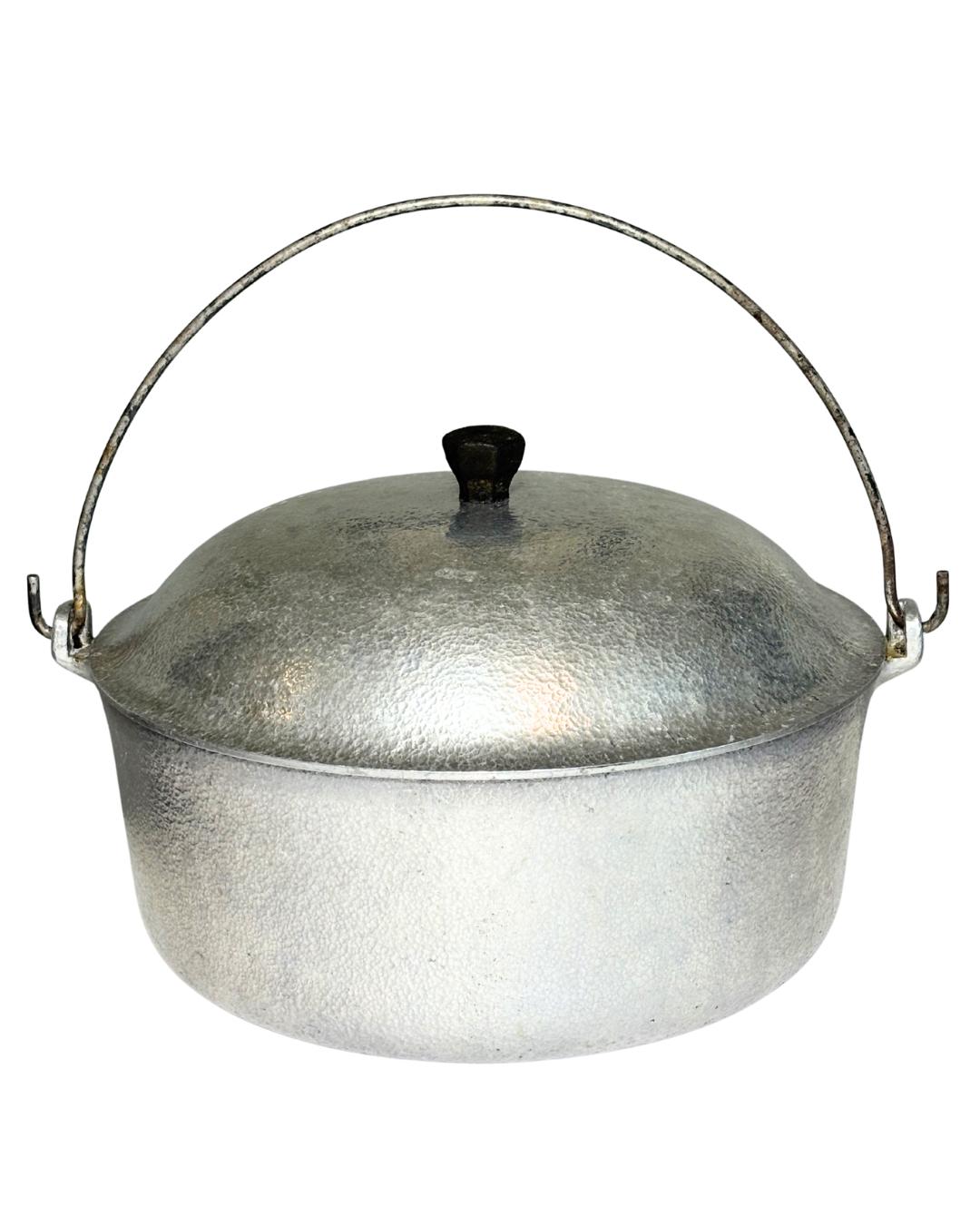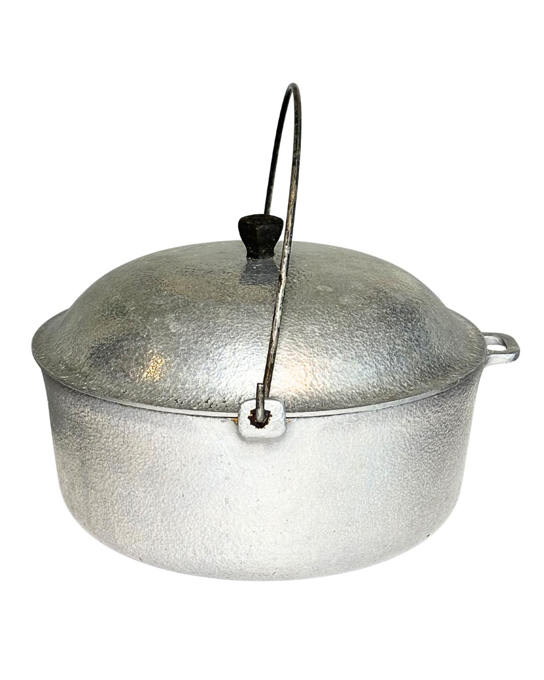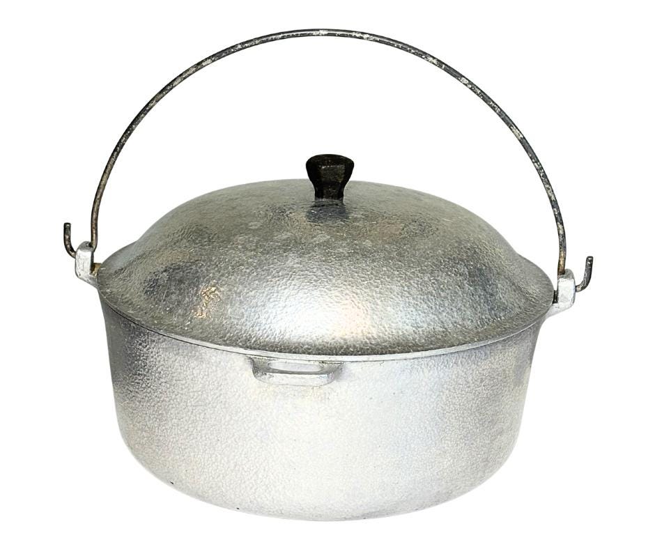 Vintage 4.5 Quart Hammercraft With Personal Service Club Aluminum Co. Hammered Finish Dutch Oven W/ Lid Bakelite Knob And Wire Bail Handle