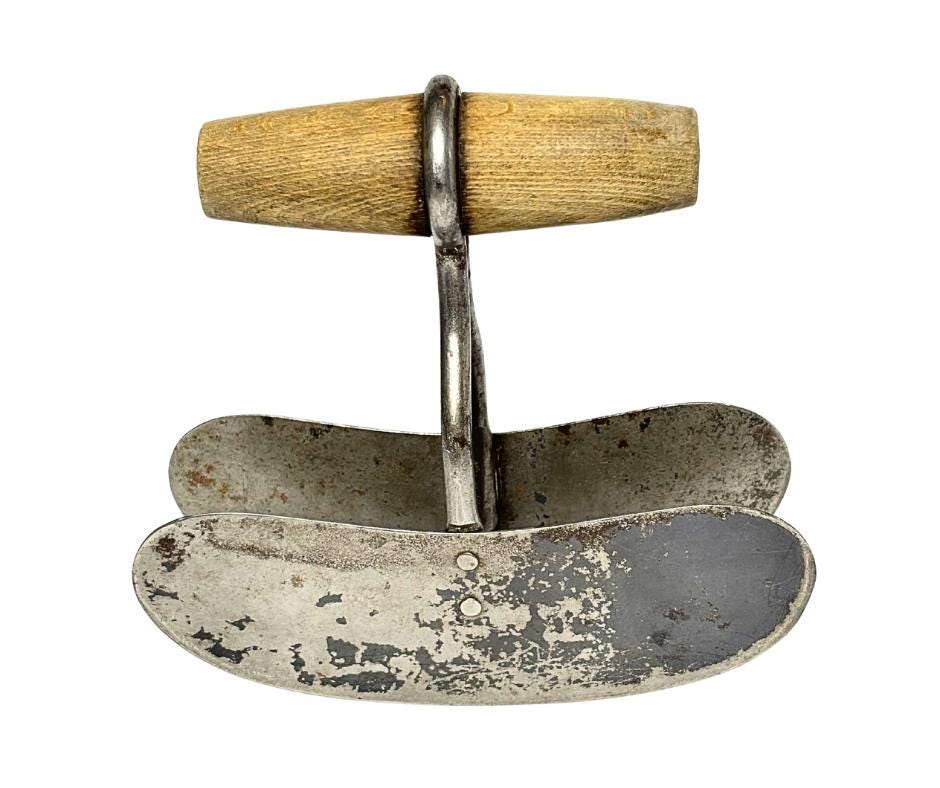 Antique Wood Handled Rocking Double-Blade Food Chopper Kitchen Utensil