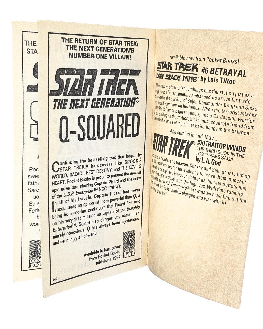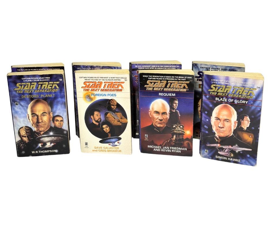 Vintage 1994- 1996 First Edition, First Printing Star Trek The Next Generation Novels 8 Book Set- Pre-Owned.