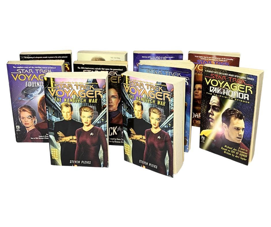 Vintage 1996- 2003 First Edition, First Printing Star Trek Voyager Novels 10 Book Set- Pre-Owned.